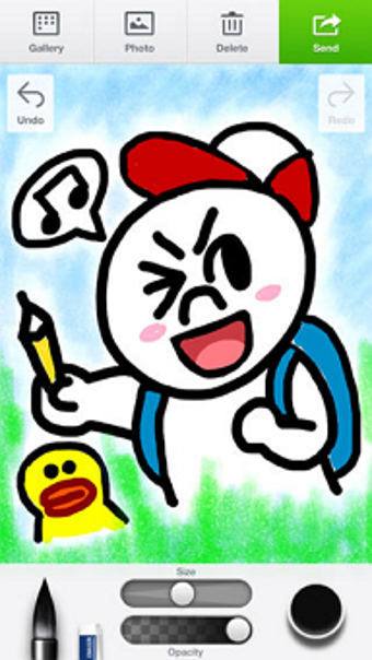 LINE Brushで作ったイラストをすぐに送りたいときは、画面右上のSendボタンから送ることができます。また、ギャラリーには作った作品が保存されるので、一度作ったものをほかの人に送りたいときやもう一度見直したいときにも便利です。